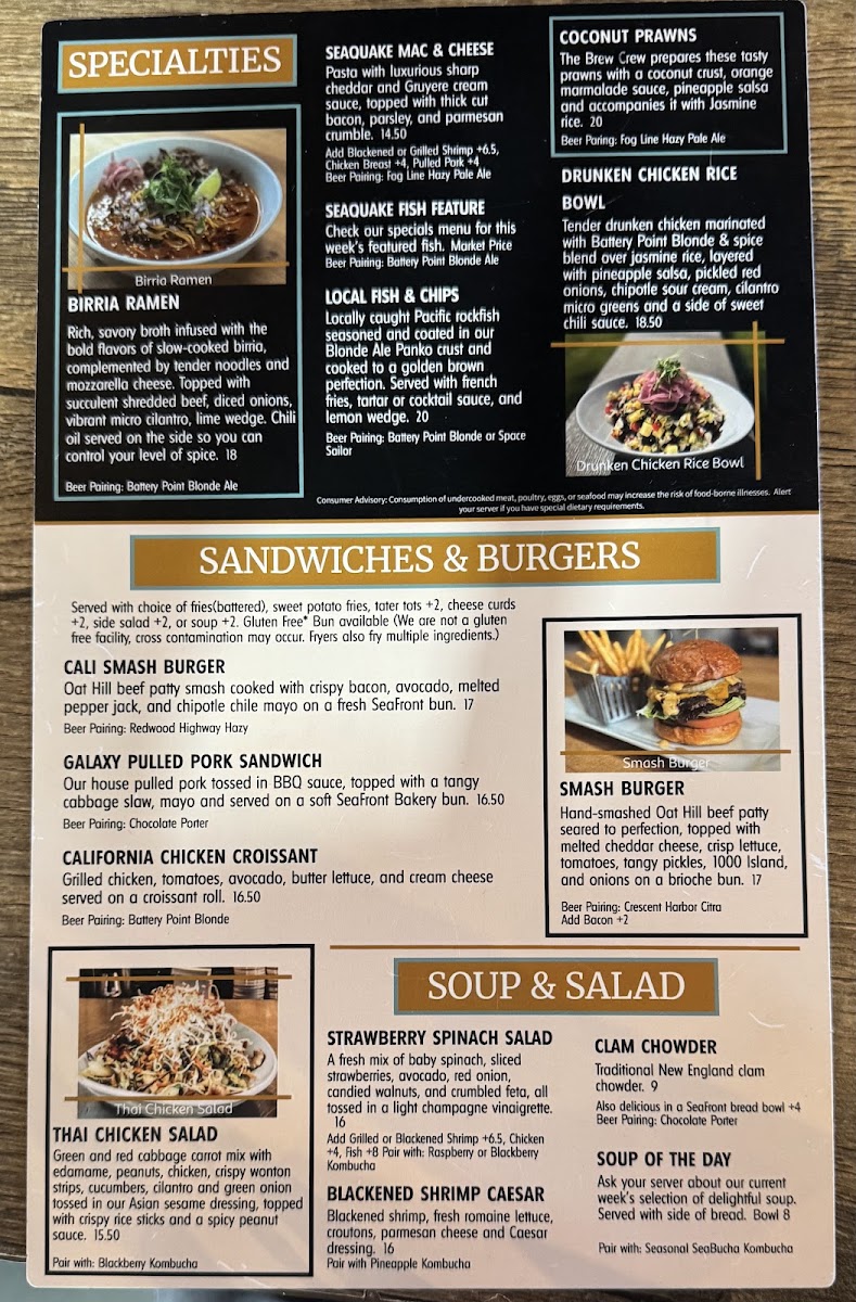 Chef Francisco works his magic on the SeaQuake version of a traditional New England Clam Chowder. Have it served in a house-made artisan bread bowl. +$4 Gluten Allergy Dairy Allergy